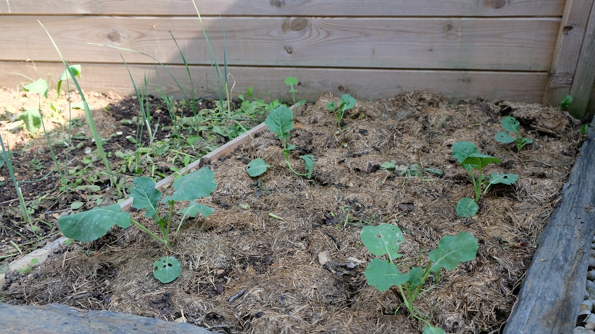 In late September, we had our last tomatoes. After them, we decided to plant coliflowers and broccolis on this side of the garden, separated by some leeks. We also planted some spinach where we used to have our carrots. We have been invaded by slugs as soon as it begun to rain and our strawberries got ill. Unfortunately, we had to remove them from the garden, so we planted some carrotts for next spring.