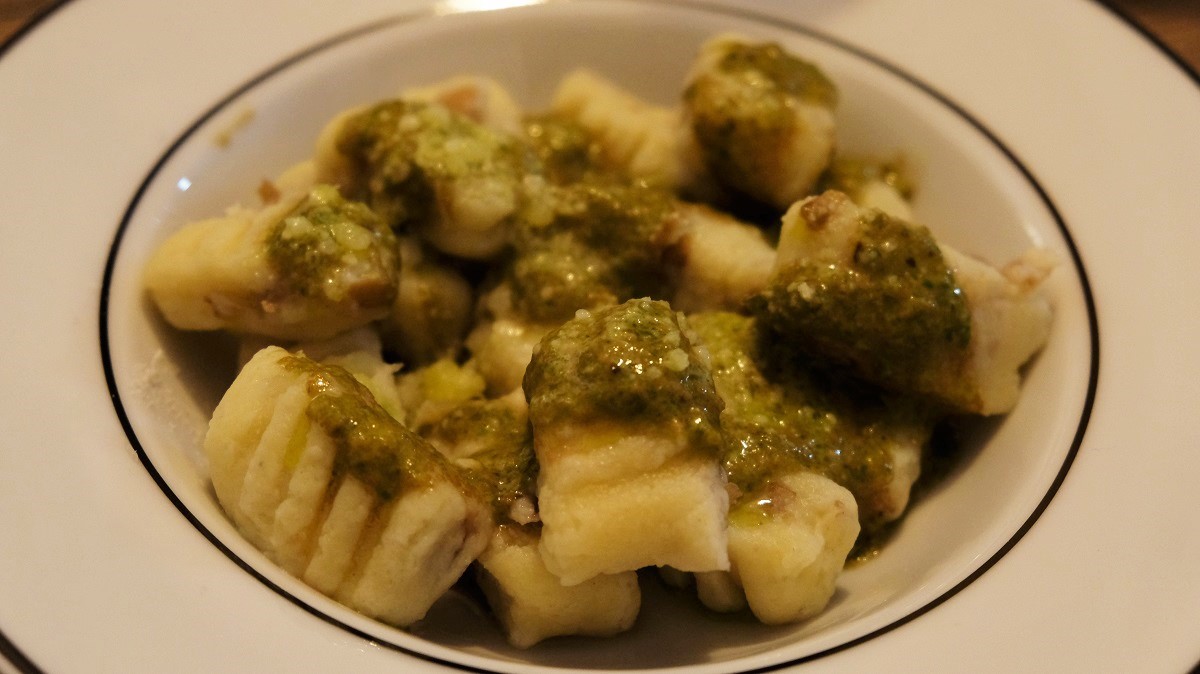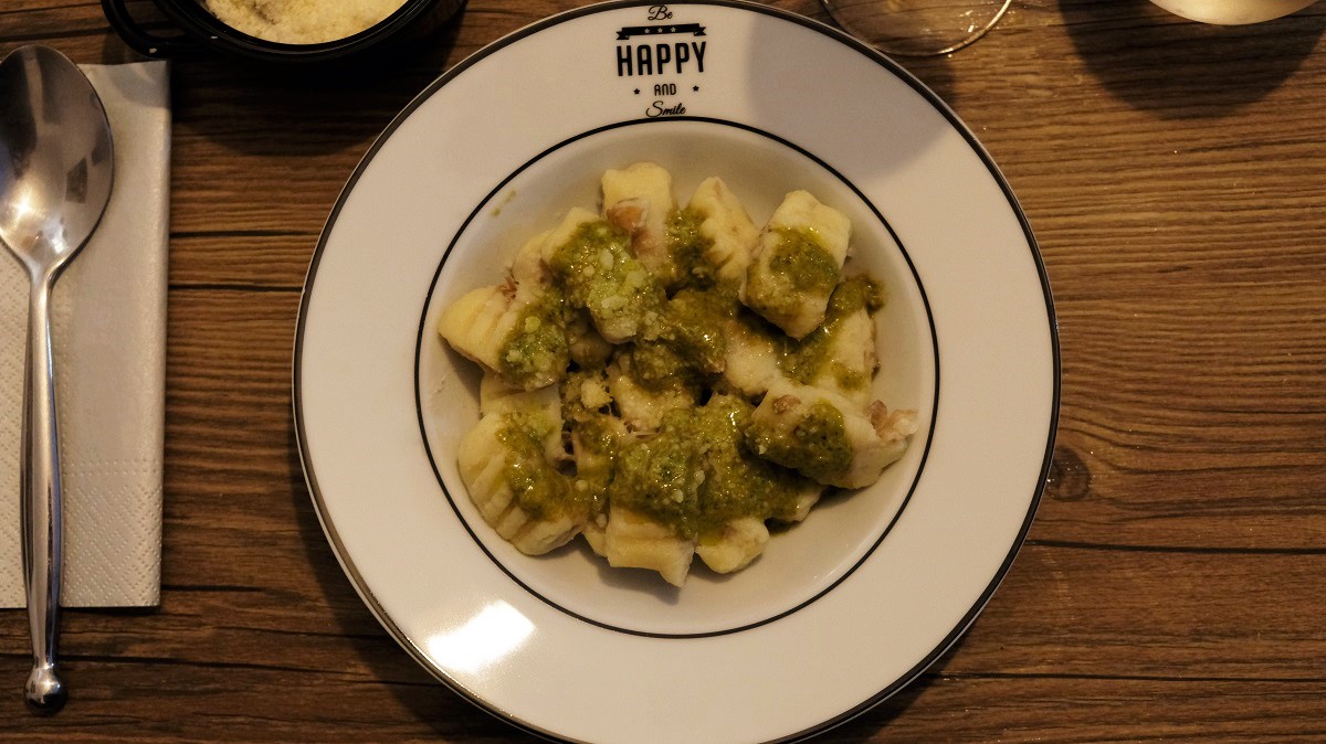 For the sauce, peel the garlic and put it in your blender with the other ingredients for the sauce and mix. Pour the sauce on top of your gnocchis on your plates and spread some more parmesan grounded cheese on top. Serve.