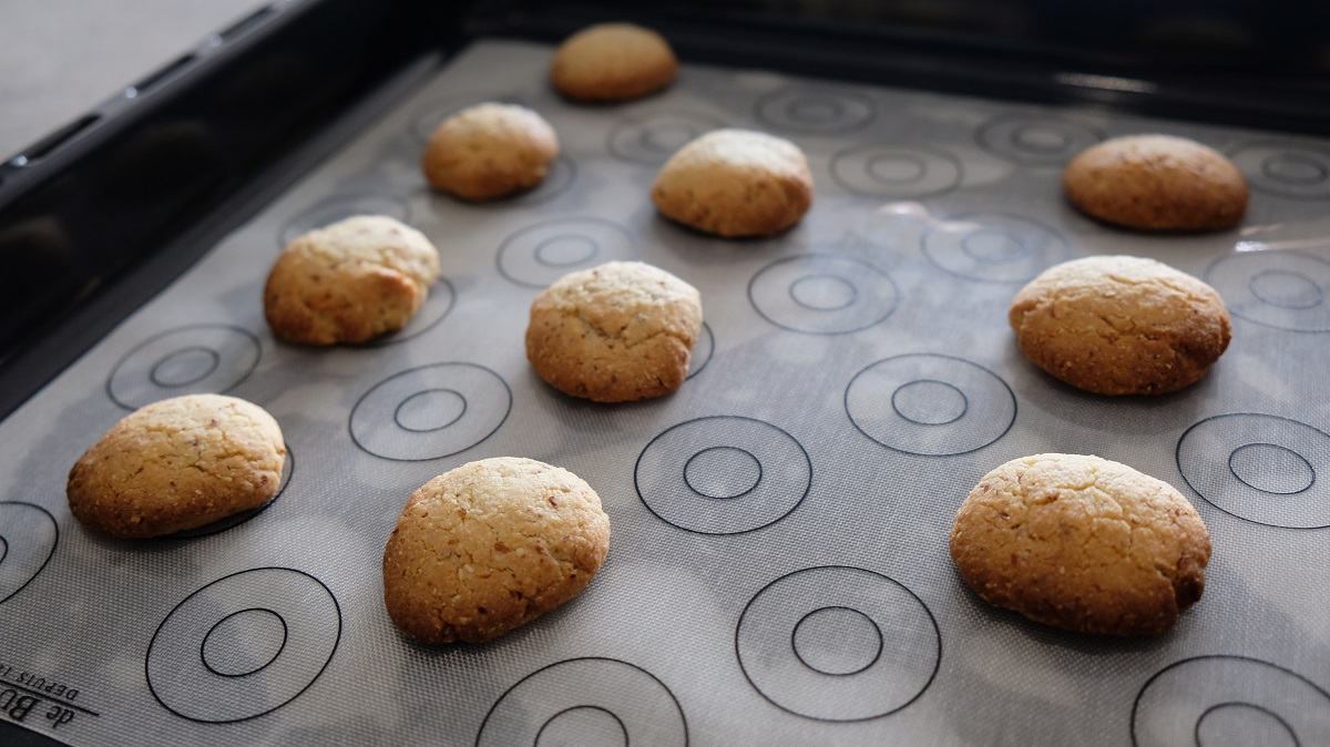 Those little biscuits are really easy to do and perfect for breakfast, tea time or with coffee in the end of your meal. You can use either whole almond powder or regular one (skin removed). Since you will only need egg yolk, you can use the white to make meringues, financiers or madeleines. Here, you can prepare 30 biscuits.