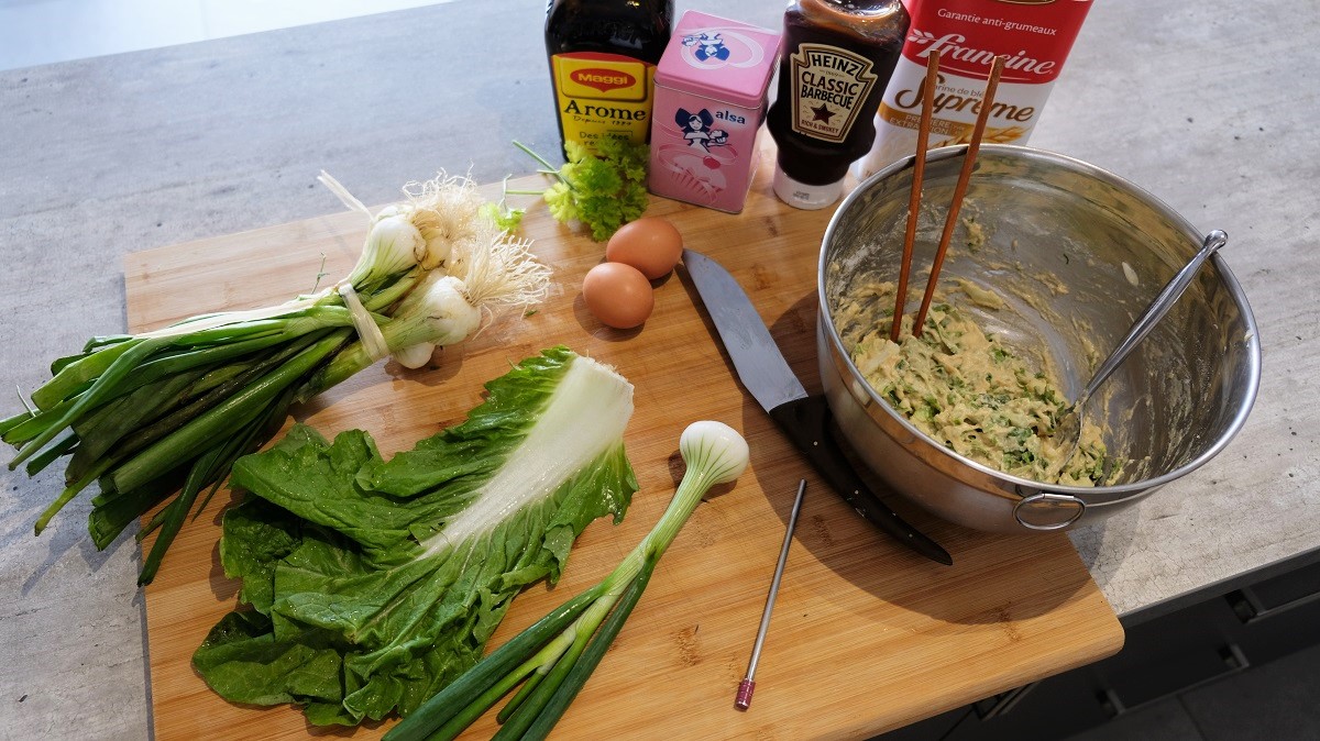 Do you know Okonomiyaki? This a super Japanese recipe from Osaka and Hiroshima in which you can add a lot of ingredients to vary the taste. This is my husband who discovered it a few months ago (yes he loves to cook too, lucky me). In this one, we chose to use bacon and parmesan but you can make it veggie and dairy free if you do not use those ingredients. The dough remains the same but the vegetables you add can vary as you like and this is what I like in this recipe. Thanks to this, you can do it all year long using fresh and seasonal products. Since we were on Spring when we made it, this one uses vegetables from this season. The original sauce used in this recipe is the Bulldog sauce, but, since we haven’t been able to find it in our city’s shops, we have created one with other ingredients. Let us know if you like it…