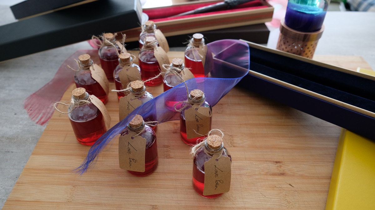 As Harry Potter fans, my husband and I decided to create our own love potions as guest gifts for our wedding. We have founded many different recipes and finally tried to create something that seemed to be good. And it was a success after a few combinations. So here is the final good result for delicious love potions…