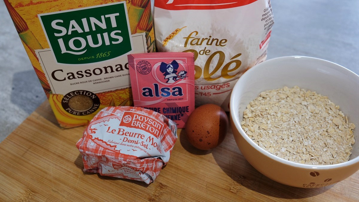 Pre-heat the oven at 180°C. Melt the butter in a sauce pan and keep beside. In a mixing bowl, combine the oatmeal with sugar, flour and baking powder. Add the egg, then, the butter and combine evrything together. Place a greaseproof paper on a baking tray on which you will drop off 9 nut size of the dough (beware to have a huge space between them because they will flatten a lot while cooking). Bake 6-7 minutes, then, remove from the oven and let cool down before removing from the tray. Do the same twice with the remain dough.