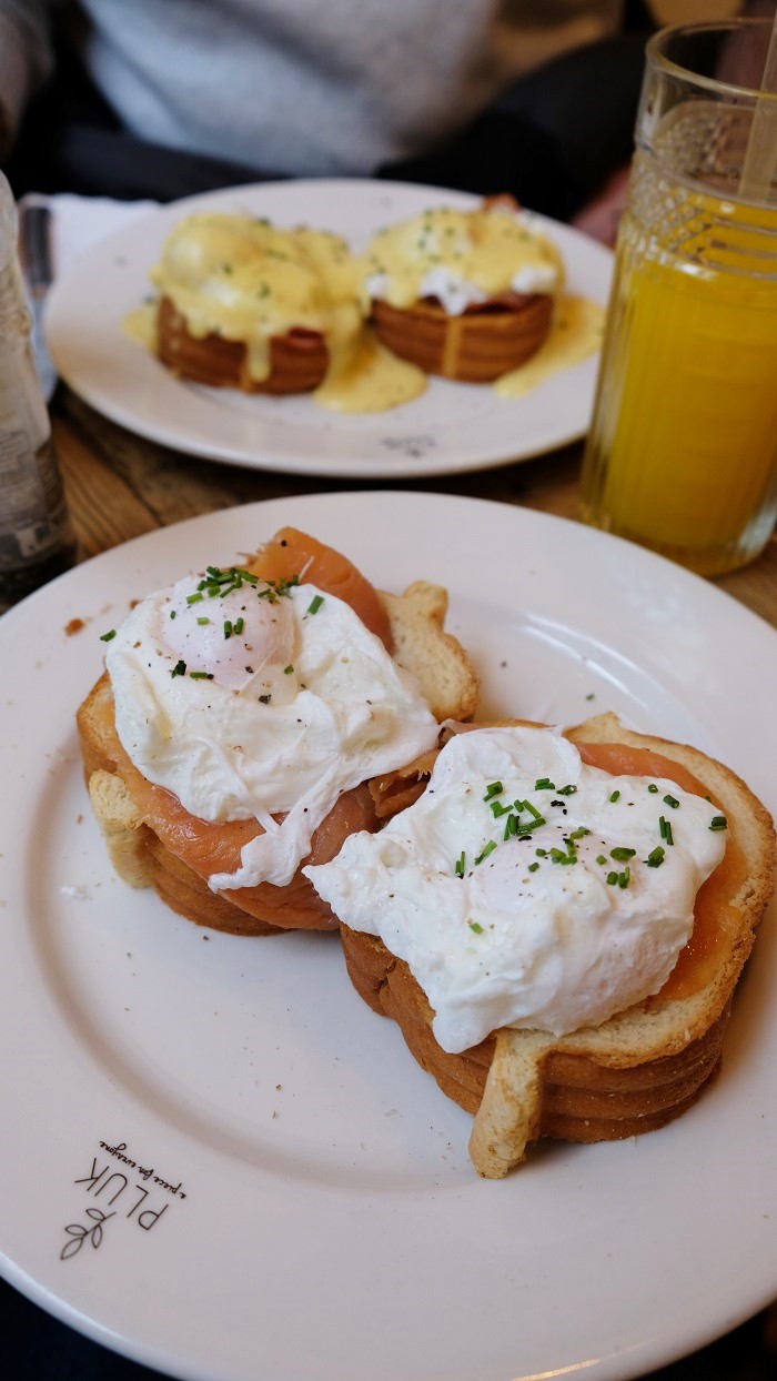 Pluk is a place where visual is as important as social medias: a clean and boho design, healthy products, nice colors, a cute shop and a restaurant area upstairs on the mezzanine. The menu is made with everything we love from breakfast to brunch and tea party all day long. It is well organized, the quality is good, quantity too and taste is here! I enjoyed the fresh orange juice and poached eggs Benedict and Norwegian…
